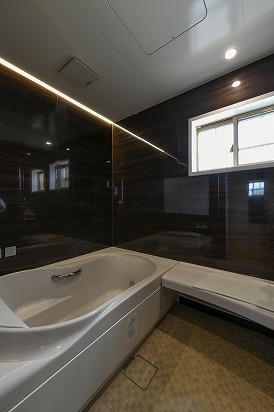 以前のタイル張りのお風呂と比べると格段に暖かくなりました♪肩からお湯が出るタイプを採用