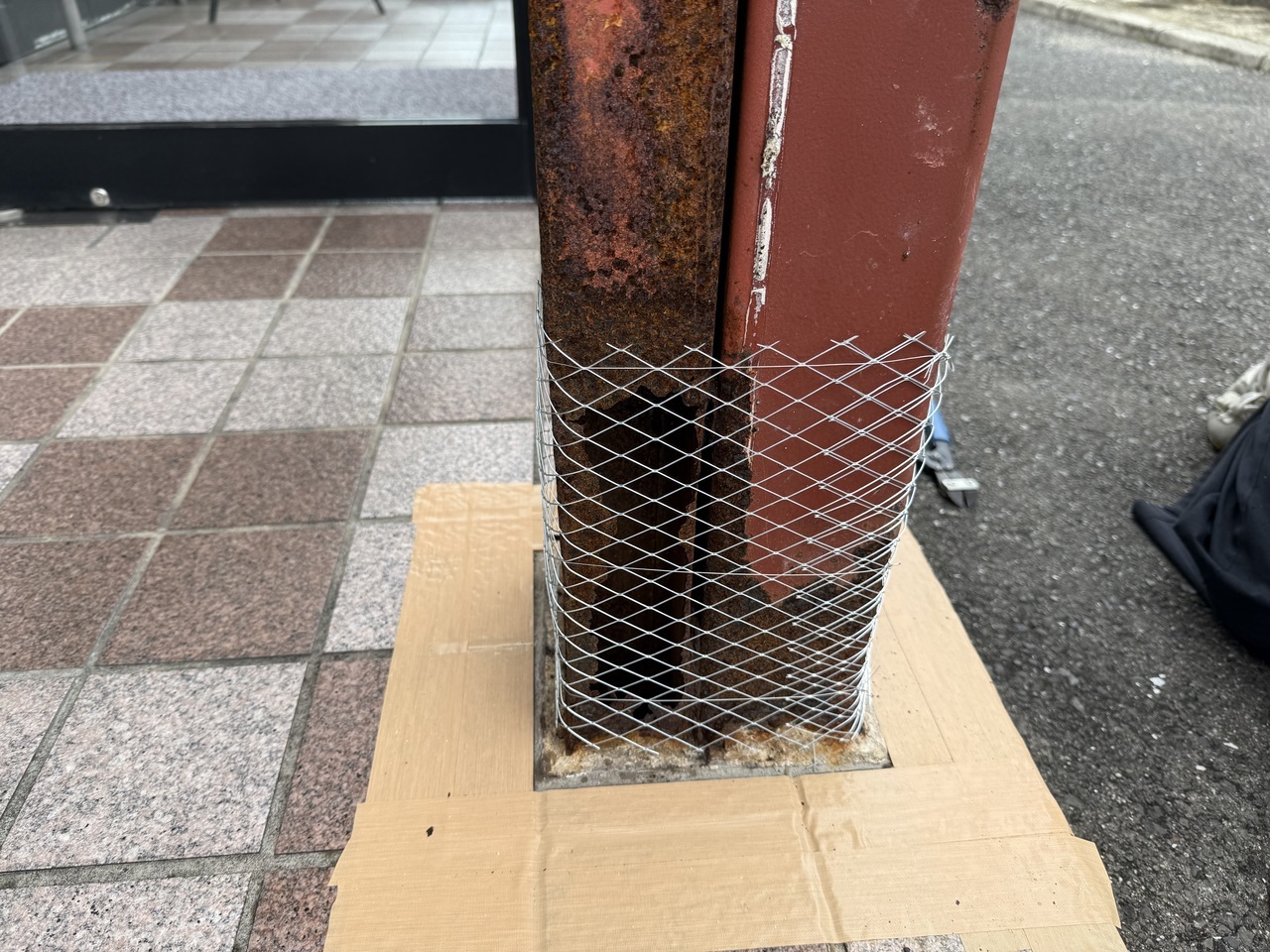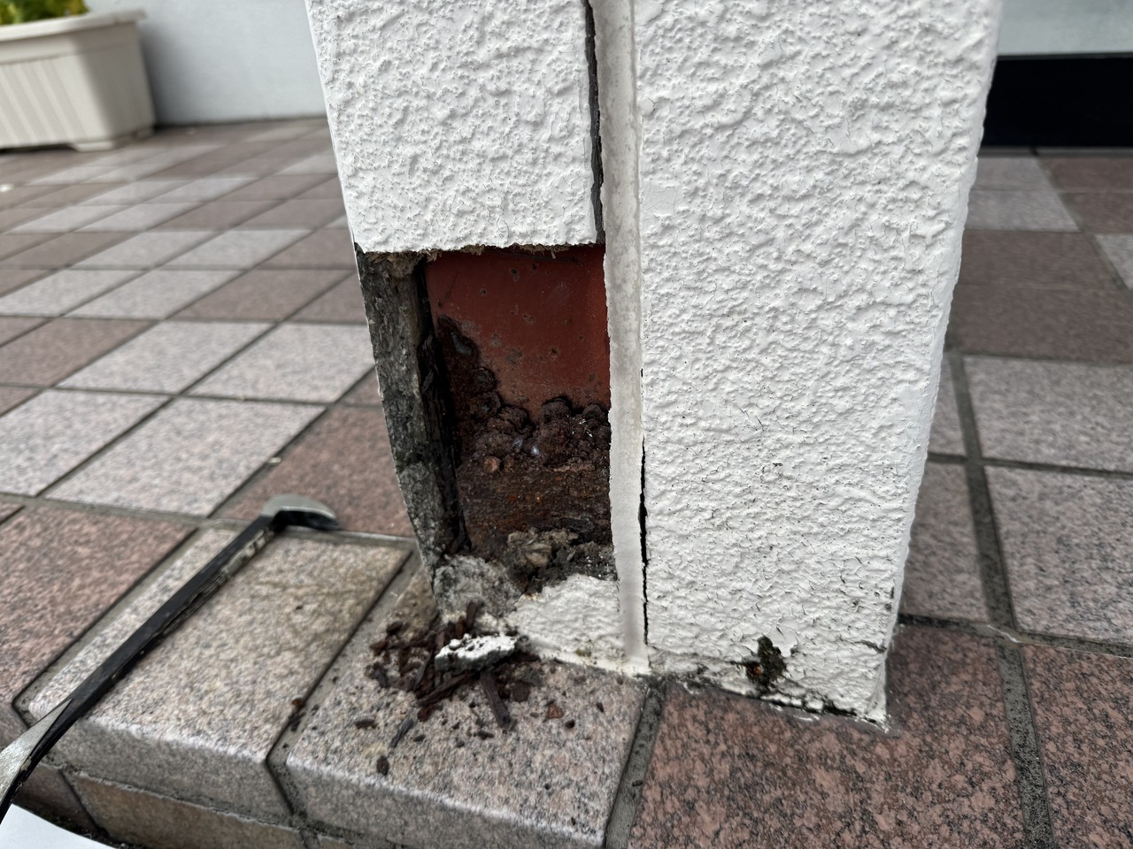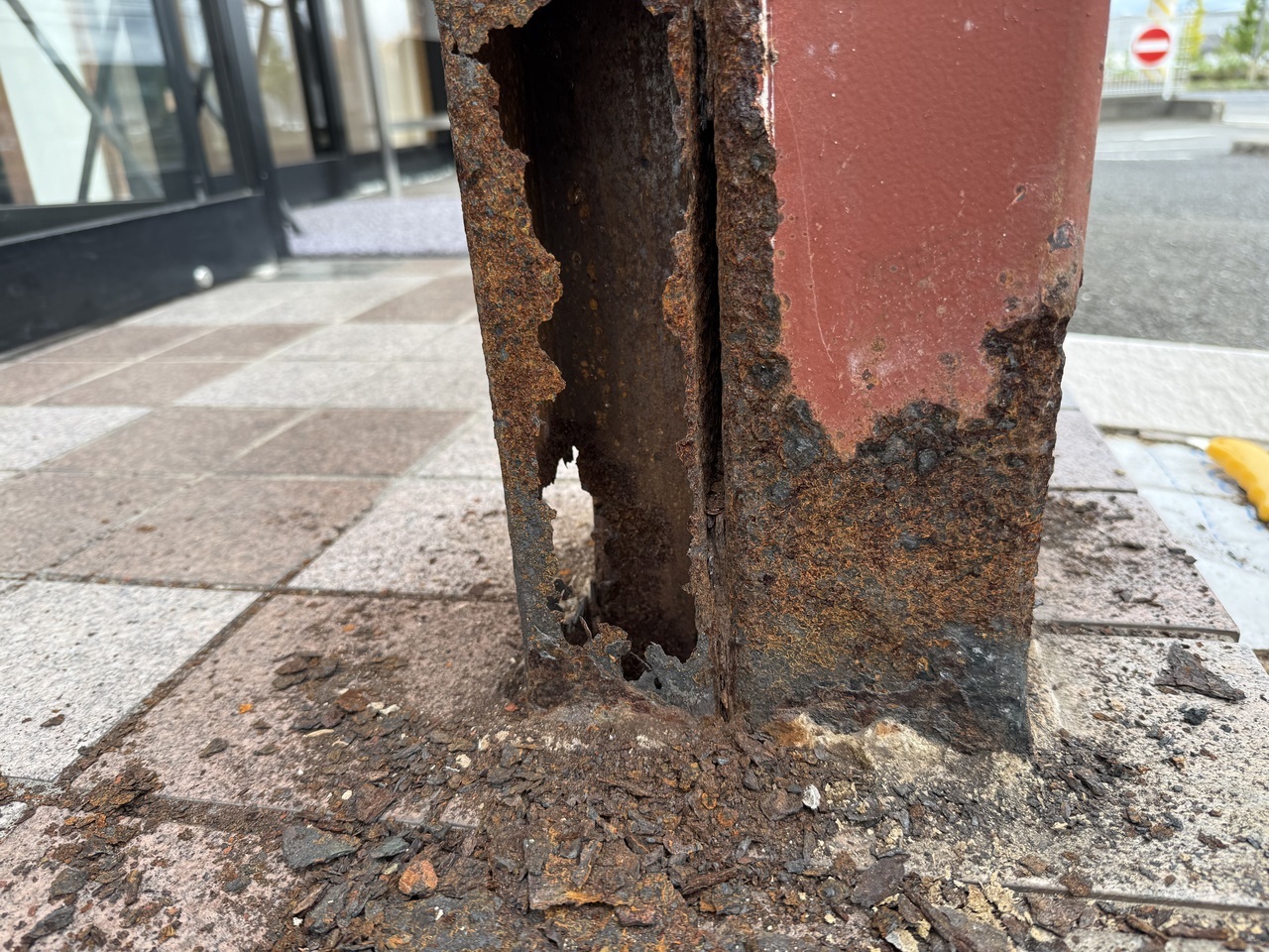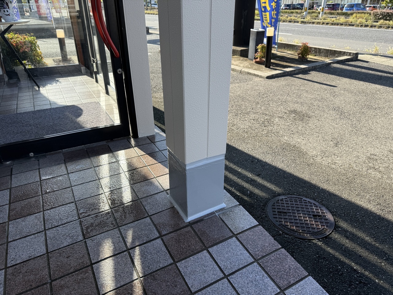 お店より構造柱に不具合が起きているとご連絡があり、調査したところ雨水の侵入により柱が腐食していることが判明しました。建物の所有者さんに調査結果のご報告と、このまま放っておけば重大なトラブルに発展するご説明をさせて頂き、屋根外壁の塗装替えと一緒に構造柱を補強する工事のご依頼を頂きました。
